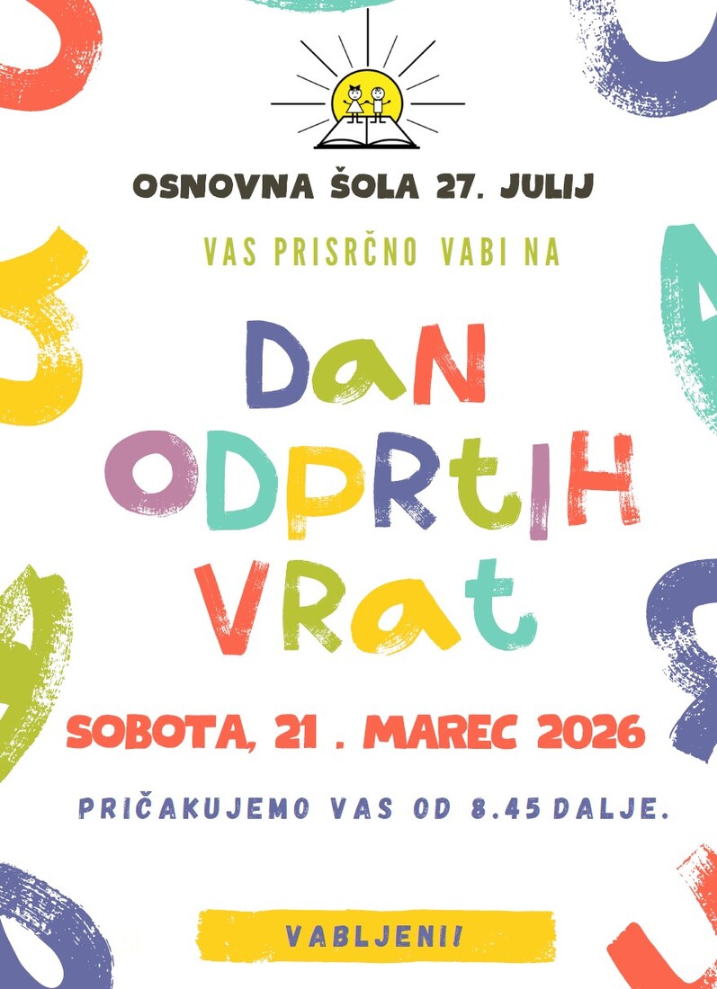 Občina Kamnik praznuje 2026: DAN ODPRTIH VRAT OSNOVNE ŠOLE 27. JULIJ KAMNIK
