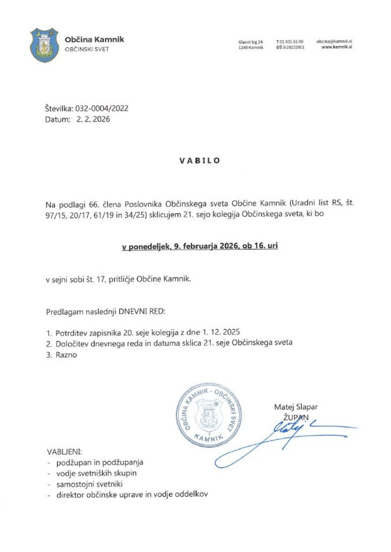 21. seja kolegija Občinskega sveta Občine Kamnik