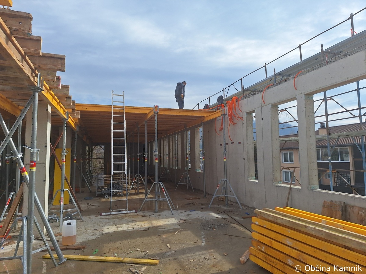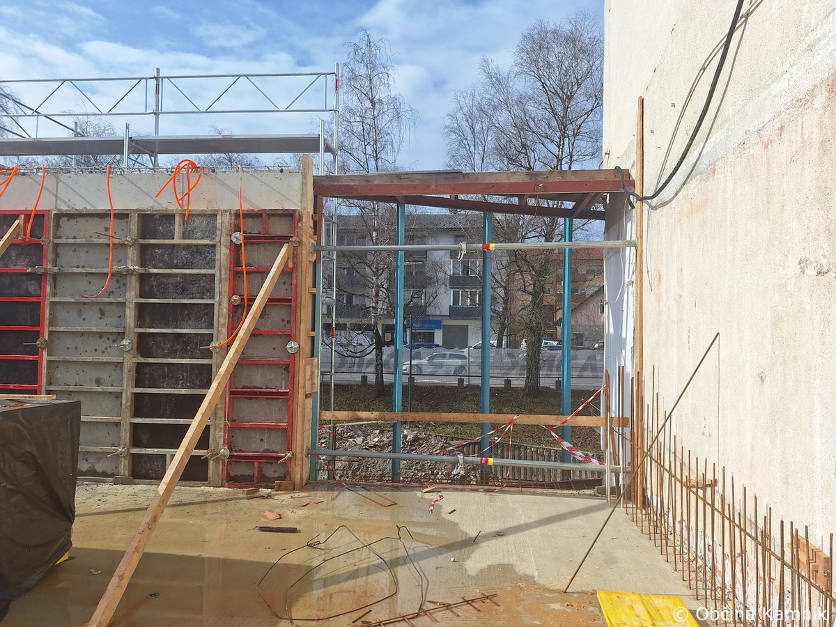 Izvajala so se montažna in slikopleskarska dela na delu stavbe št. 1150 v k. o. Kamnik. Na objektu osrednje kamniške knjižnice se je nadaljevalo izvajanje gradbenih del, in sicer razopaženje sten betonskega jaška za dvigalo ter izvedba opaža vzhodnega dela plošče nad prvim nadstropjem. Na zahodni strani južnega trakta se je izvajalo vezanje in vgrajevanje armature nosilnih sten prvega nadstropja ter vgrajevanja zaščitnih cevi za namen elektro instalacij. Pretekli teden so potekali razgovori s projektantko Matejo Katrašnik Arhiteza d.o.o. ter Bredo Podbrežnik, direktorico Knjižnice Franceta Balantiča Kamnik glede namestitve opreme v osrednjem kamniškem kulturnem hramu.