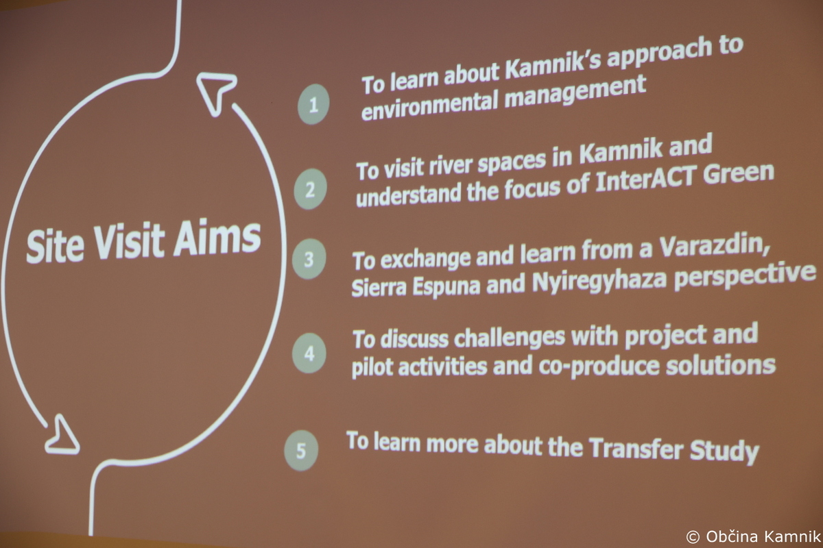Občina Kamnik je 21. in 22. aprila gostila študijski obisk partnerjev v okviru projekta InterACT Green. Na dvodnevnem srečanju so poleg gostiteljice Občine Kamnik, sodelovali predstavniki Varaždina (Hrvaška), Nyíregyháze (Madžarska), Sierra Espuñe (Španija) ter Velike Britanije.