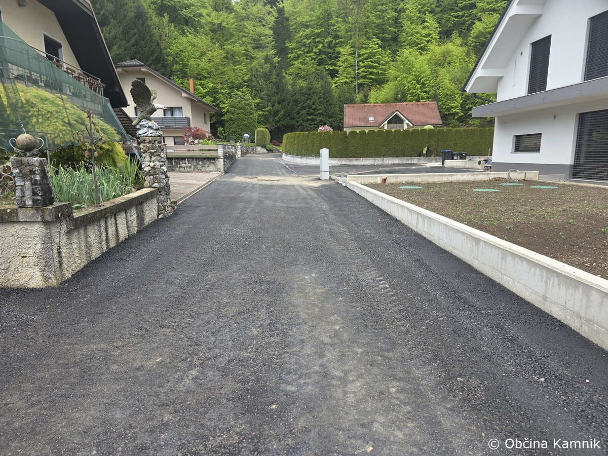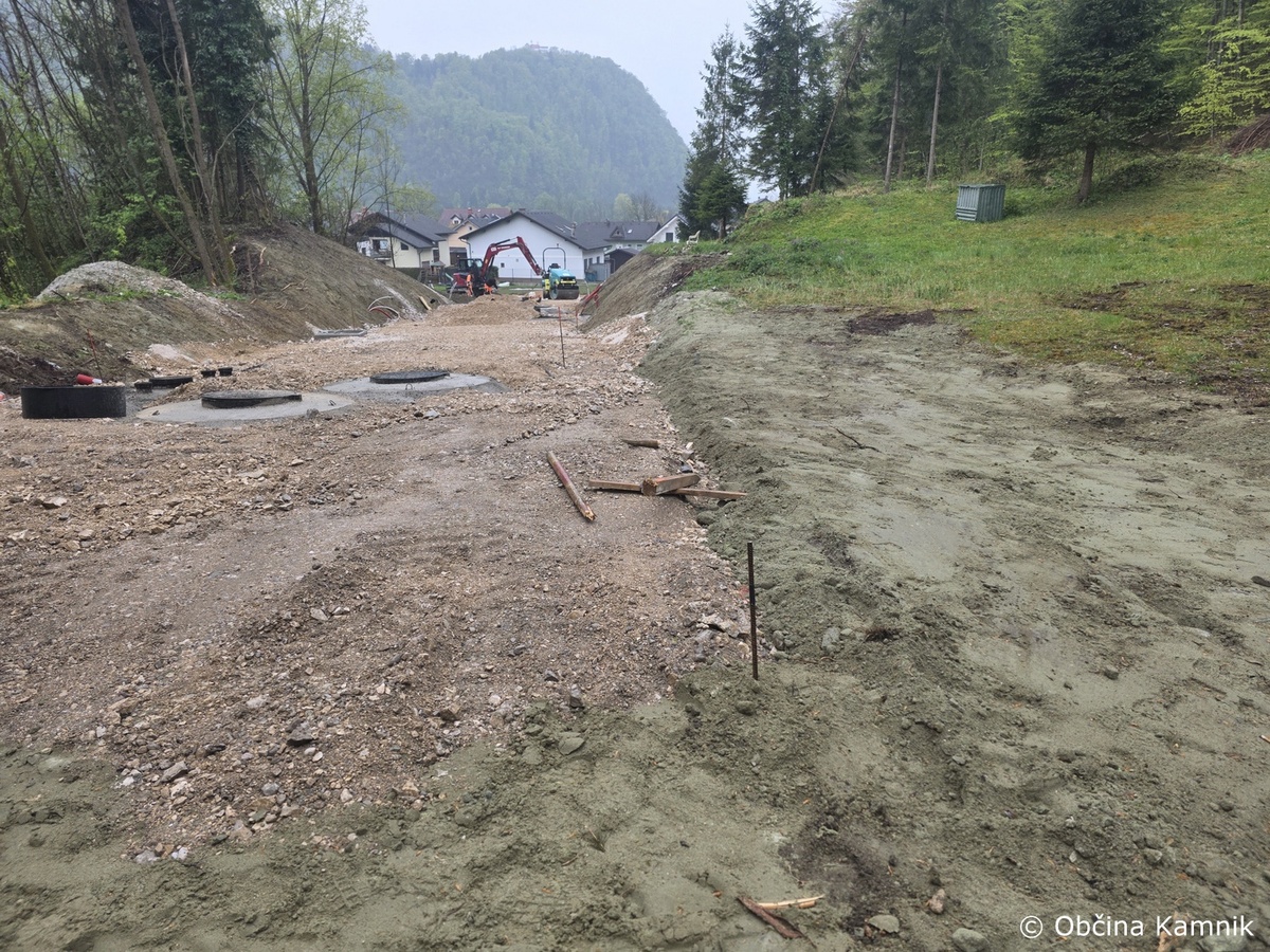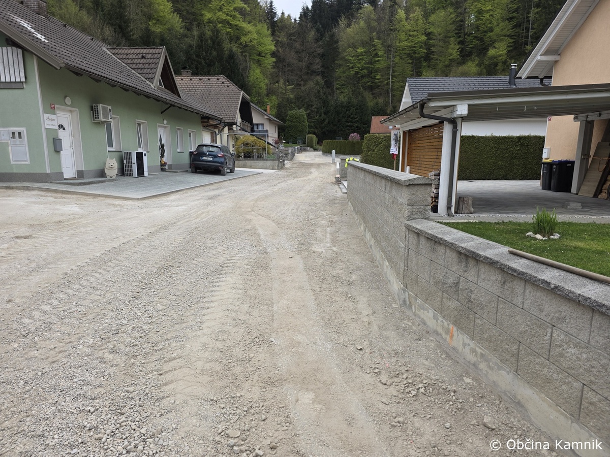 V naselju Oševek so dela skoraj končana – pripravlja se teren za asfaltiranje nove ceste. Pri izvedbi meteorne kanalizacije in elektro kanalizacije je bilo treba poseči tudi v obstoječo cesto, zato se bo asfaltiral tudi ta del.