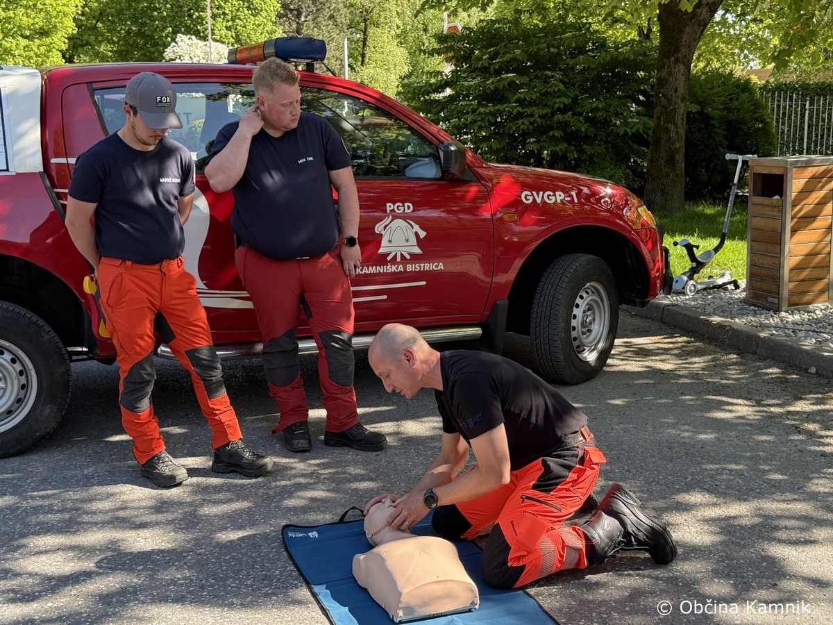 Prvi posredovalci iz Prostovoljnega gasilskega društva Kamniška Bistrica in Nujne medicinske pomoči Kamnik so v soboto, 25. aprila 2026, izvedli delavnico temeljnih postopkov oživljanja z uporabo defibrilatorja na več lokacijah: Brezje nad Kamnikom, Godič, Stahovica, Bistričica in Stranje. Delavnice v Stahovici se je udeležil tudi župan Matej Slapar, ki je poudaril, da je hitra dostopnost defibrilatorjev, zlasti na podeželju, izjemnega pomena, saj lahko odločilno vpliva na preživetje. Občina pa bo zato še naprej vlagala v širitev mreže in usposabljanje prvih posredovalcev.
