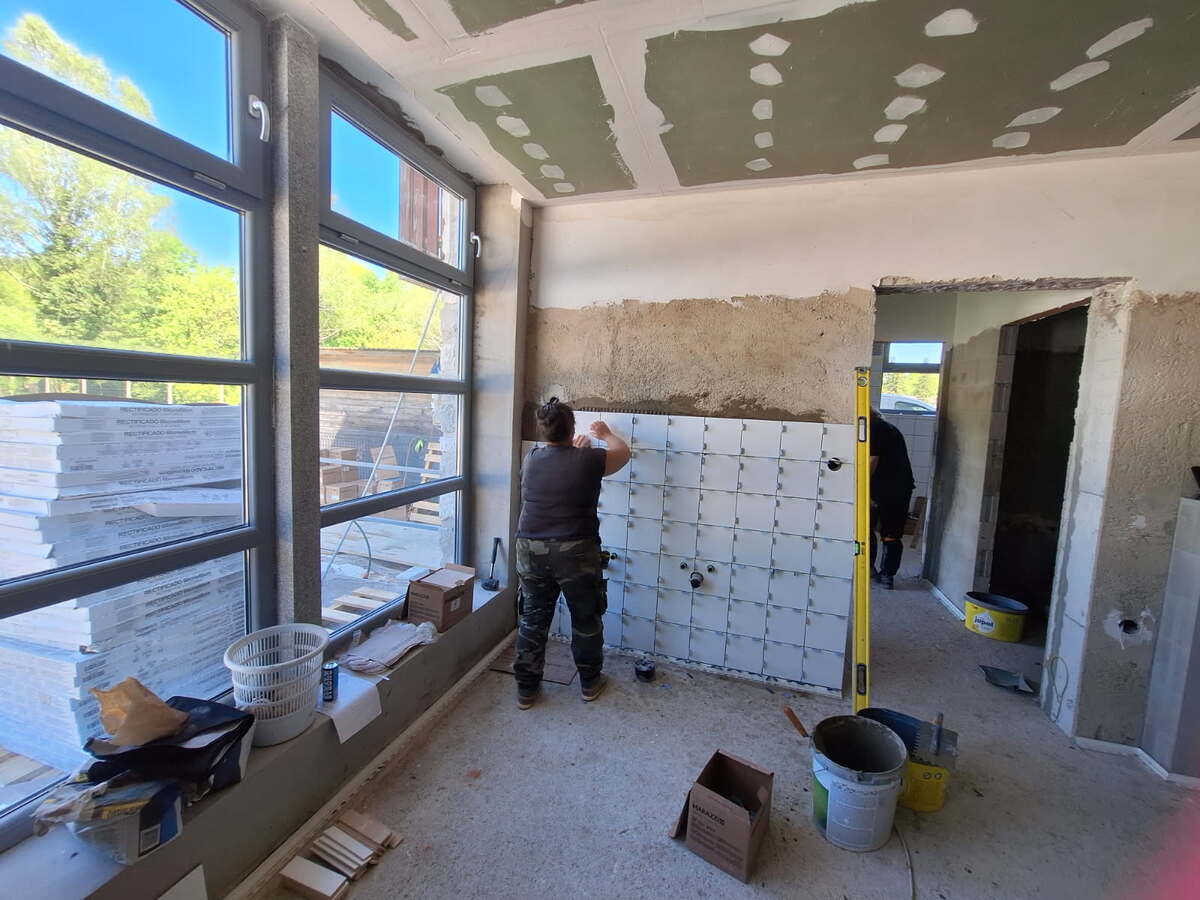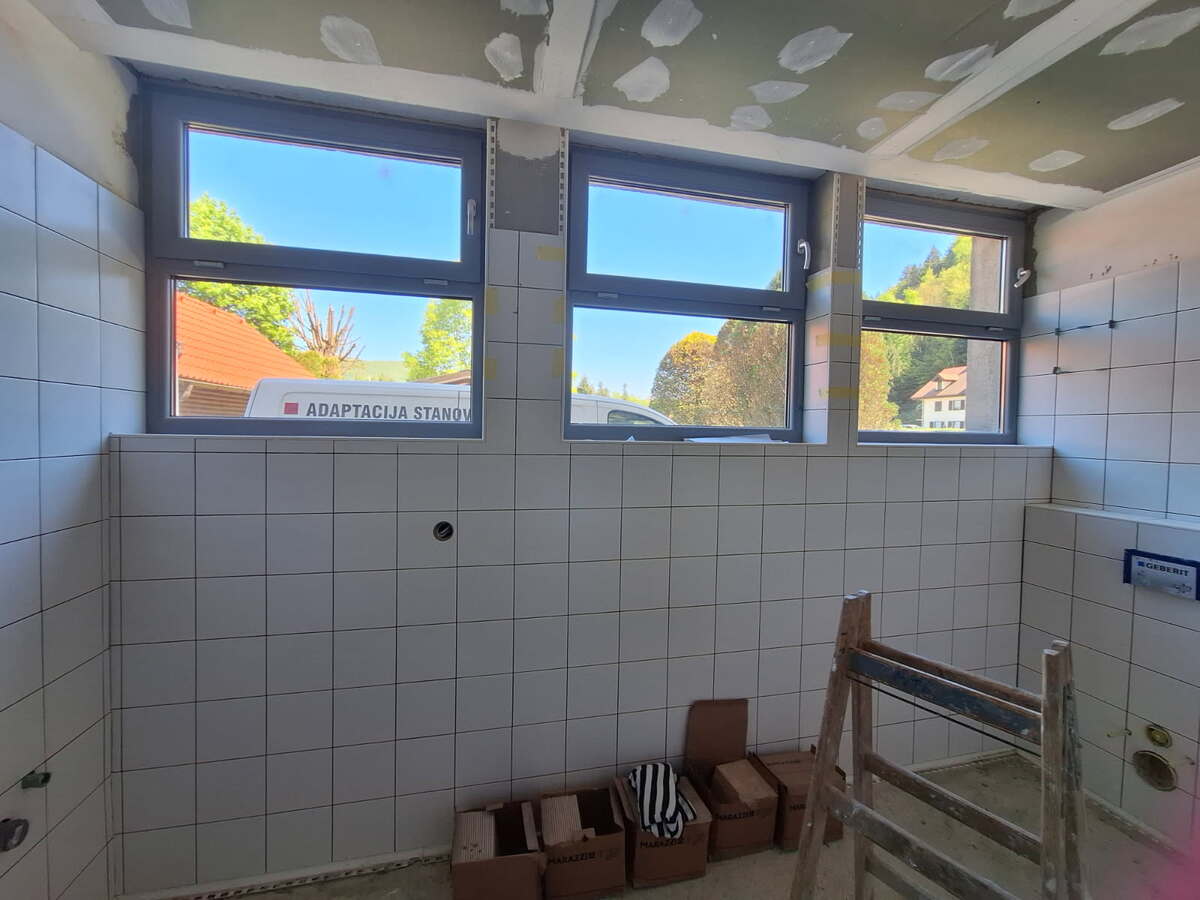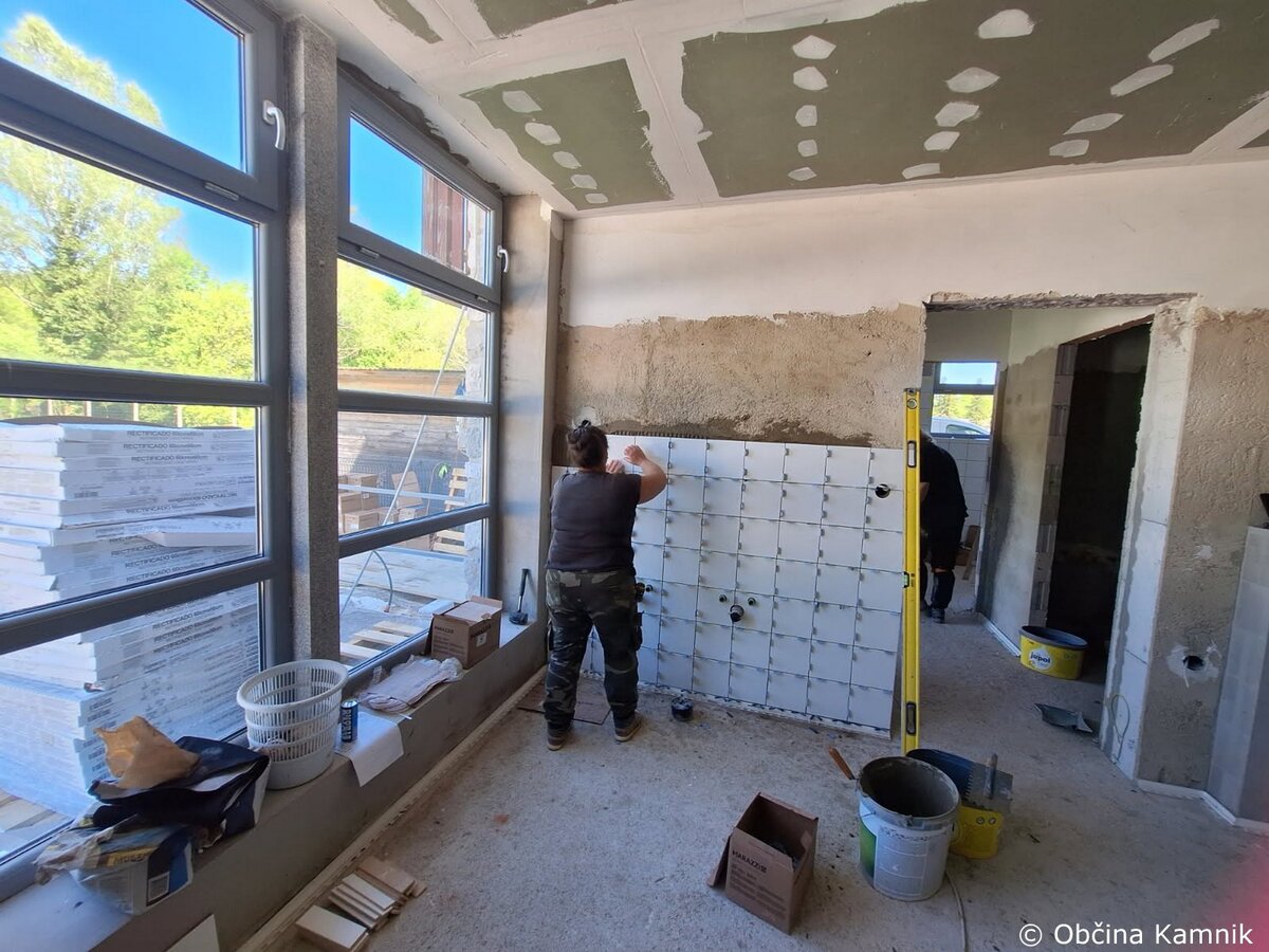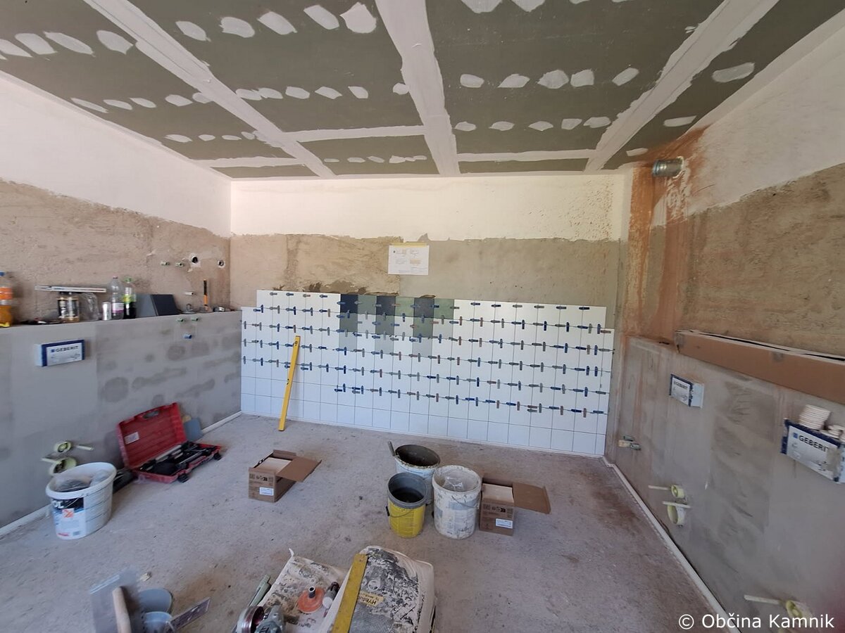 Izvajalec del družba Akvaing, d. o. o. je pretekli teden nadaljevala z izvajanjem del za prenovo sanitarij na objektu bazena Pod skalco v Kamniku. Izvajalec del je izvajal montažo spuščenih stropov ter začel polaganje stenskih keramičnih oblog.