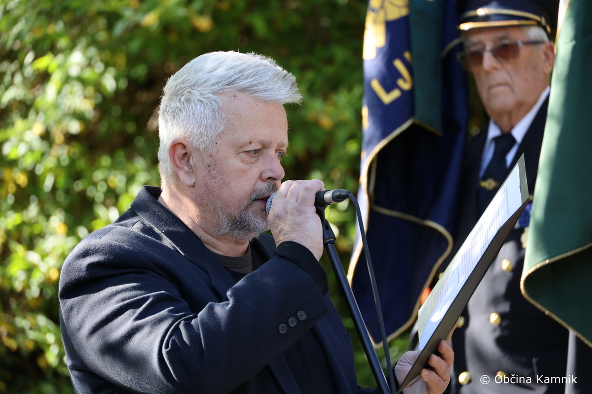 V petek, 24. aprila 2026, je v Parku Evropa potekala slovesnost ob državnem prazniku dneva upora proti okupatorju, s katero smo obeležili 85. obletnico ustanovitve Osvobodilne fronte. Poleg župana Mateja Slaparja so se dogodka udeležili občinske svetnice in svetniki, predstavniki veteranskih in domoljubnih organizacij Občine Kamnik skupaj z zastavonošami. Slavnostni govornik je bil Igor Kanižar, predsednik Pokrajinskega sveta ZZB NOB Osrednje Slovenije. Župan in slavnostni govornik sta ob tej priložnosti k spomeniku položila venec.